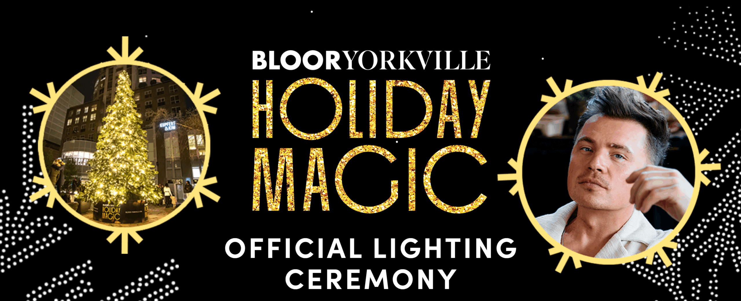 On November 22, the charming Village of Yorkville Park (at Cumberland & Bellair) will come to life with the annual “Flick the Switch” lighting ceremony, hosted by the Bloor-Yorkville BIA. This free, family-friendly evening runs from 5 PM to 7 PM and features a live performance by Shawn Hook and special guest STORRY, with the whole neighbourhood lighting up in a dazzling display of holiday cheer.