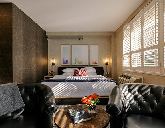 We have 115 contemporary bedrooms, Constantine restaurant and lounge, and The Crow’s Nest barber shop. Our “Next Level” is an entire floor that’s equally adept at hosting parties or brainstorms. All in the heart of one of the friendliest cities on the planet.